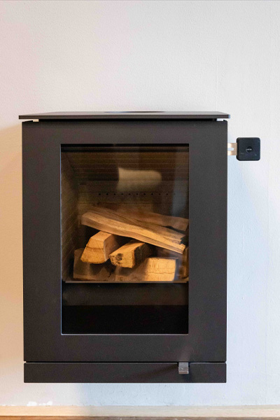 De Q-TEE WALL is een strakke, compacte houthaard die als wandmodel kan worden gemonteerd. Of op een houtvak kan worden geplaatst (optioneel te bestellen).
